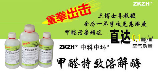 八、為此,我們的唯一措施就是通過我們的技術和產品,將處于不穩定的內部分子結構物質,進行改造成為充分聚合的穩定不變物質,從而不于揮發有害有機污染物,最終徹底真正的解決室內裝修污染問題!中科中環牌”甲醛特效溶解酶是一種人造板用膠即尿醛樹脂膠的固化劑。藥液有效成分在水的帶動下滲入人造板的表板(最外層超薄木板)內,與表板下的尿醛樹脂膠中的甲醛發生反應,在樹脂膠斷裂分解釋放游離甲醛處,生成更加堅固的樹脂體,經過實驗與長期實踐使用,新生成的樹脂體在高濕度、高溫度的情況下不會發生還原反應,使尿醛樹脂膠的表層被加固,從此不再分解斷裂,斷絕了甲醛釋放的根源,因此長期治理效果特別突出。產品藥液中的水變為水蒸氣蒸發,沒有二次污染。這就是我們超越他家的重磅拳頭技術。